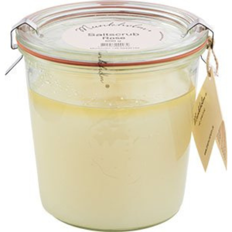 Håndlavet saltscrub fra Munkholm med skøn klassisk duft af gammeldags roser.